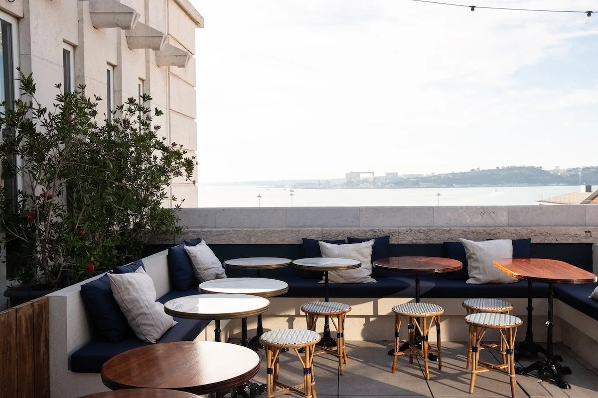 Ideal for letting ideas run free, it’s located on top of the old CTT building, next to Mercado da Ribeira, which was created to cement Pierre d’Andrimont and Margaux Marcy as central figures in Lisbon's restoration. With a fabulous view over the river, the bridge and the south bank, Javá is the party that its name suggests. Blue velvets, plants, geometric mosaic tables and high stools are ready to host weekend dinners and brunches.